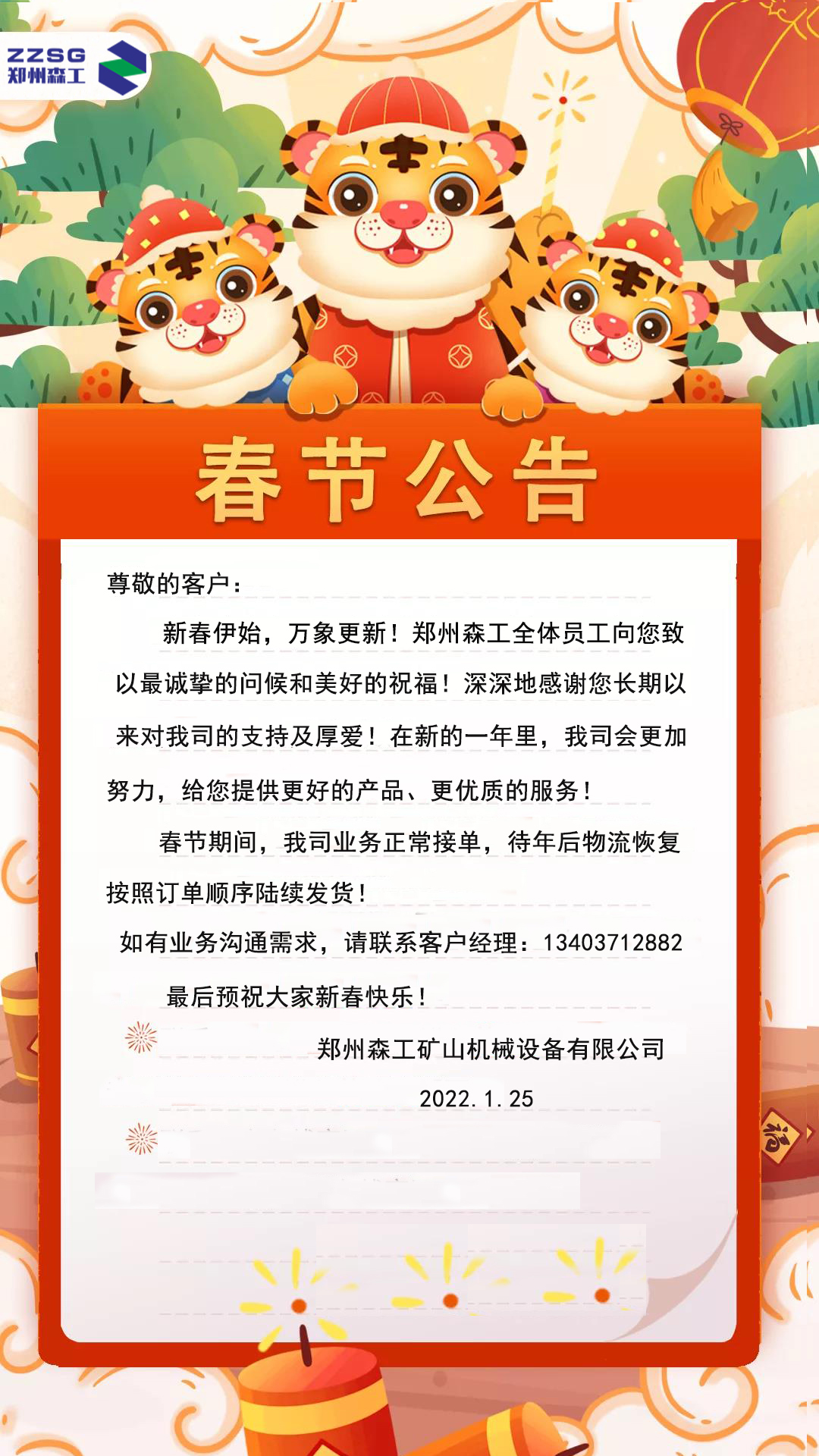 郑州森工2022年春节安排