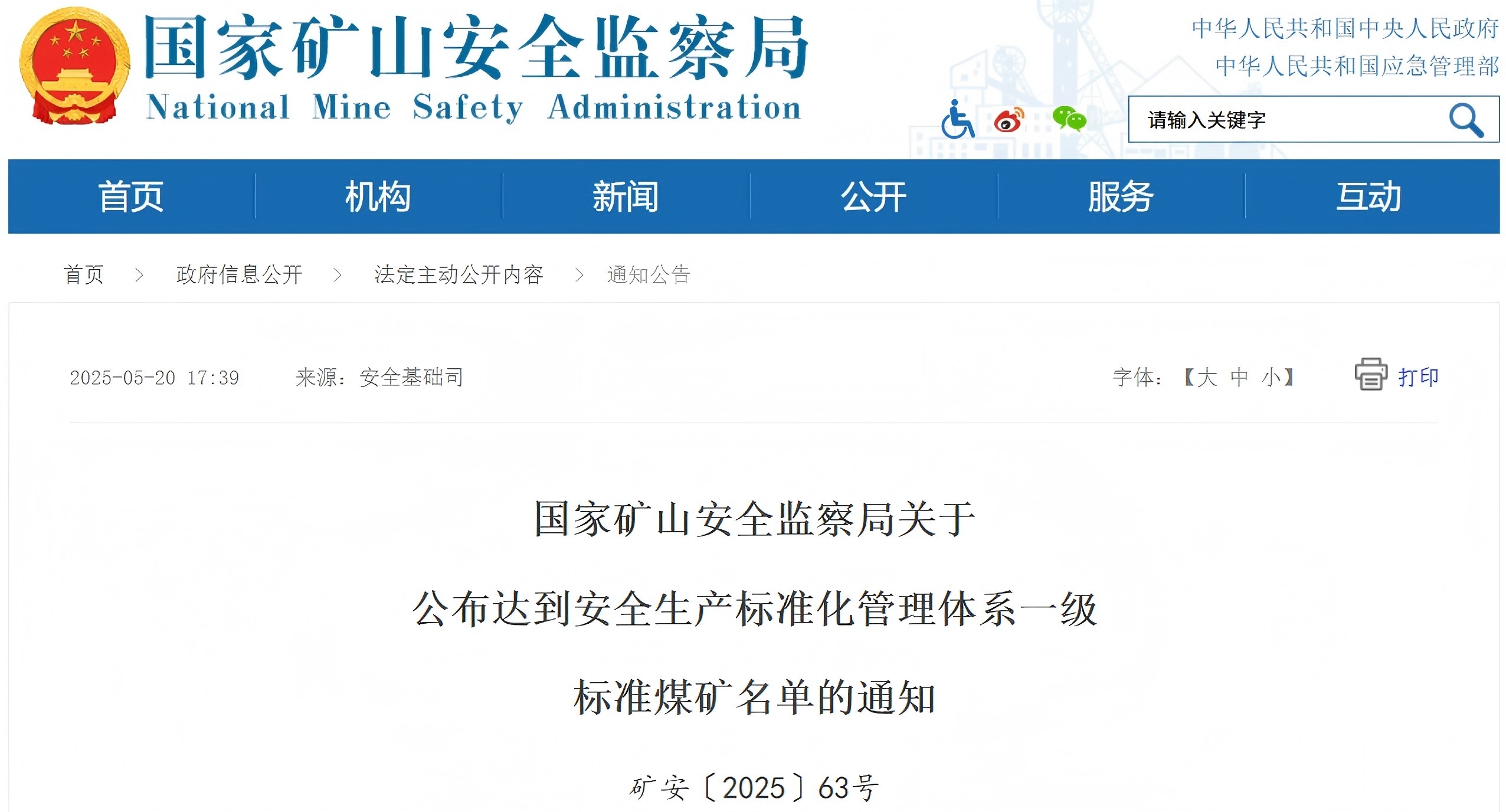 矿安〔2025〕63号 各产煤省、自治区及新疆生产建设兵团煤矿安全监管部门、煤炭行业管理部门,国家矿山安全监察局各省级局,有关中央企业: 按照《煤矿安全生产标准化管理体系考核