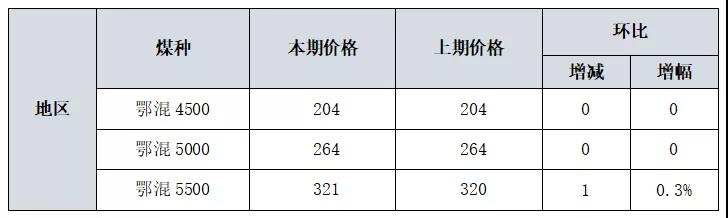 近期产地积极因素不断积累,使得供大于求的局面得到阶段性缓解,目前利多因素小幅占优,煤价出现稳中小涨的局面。内蒙古煤炭交易中心发布的最新鄂混日价格显示:本期坑口三个主流规